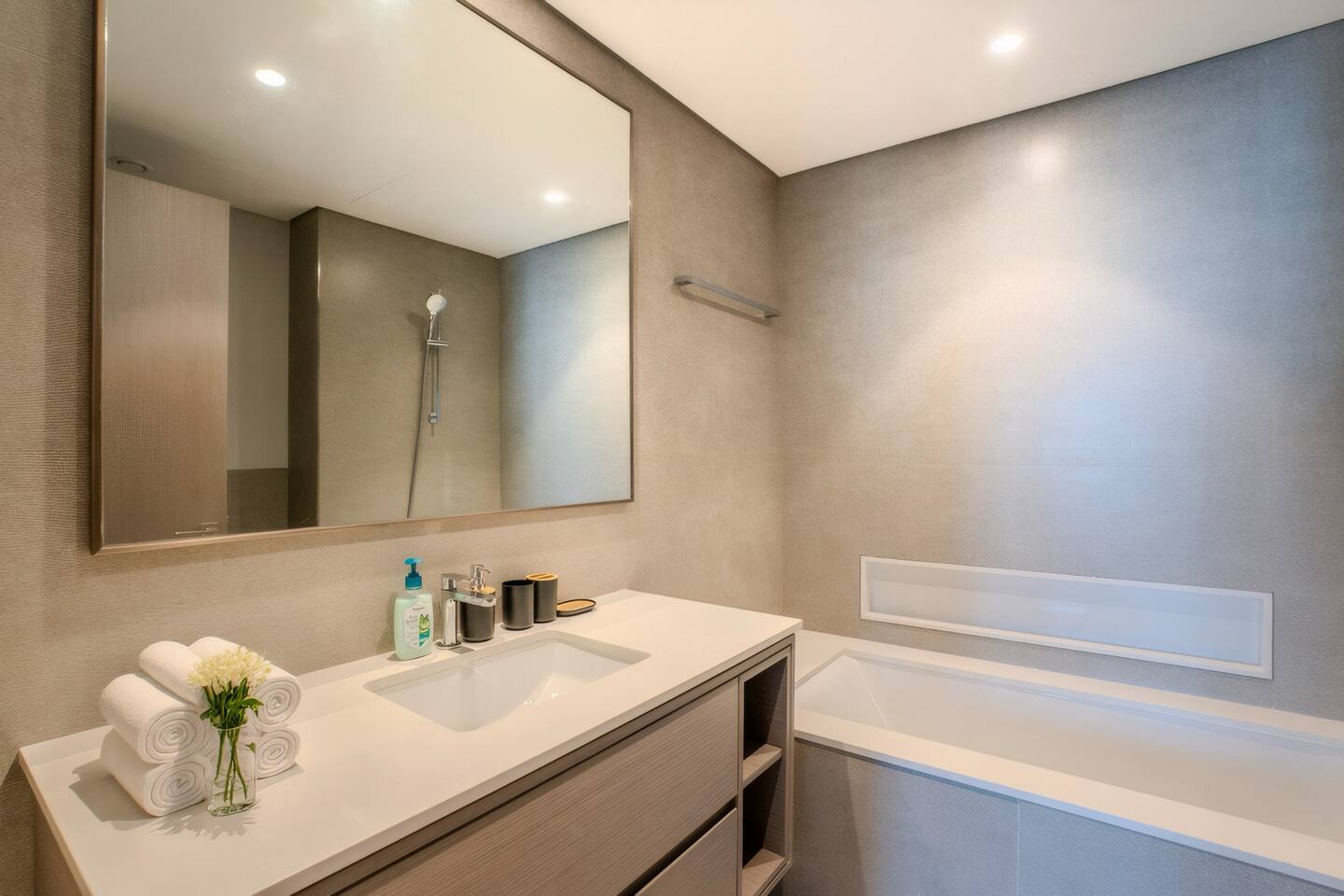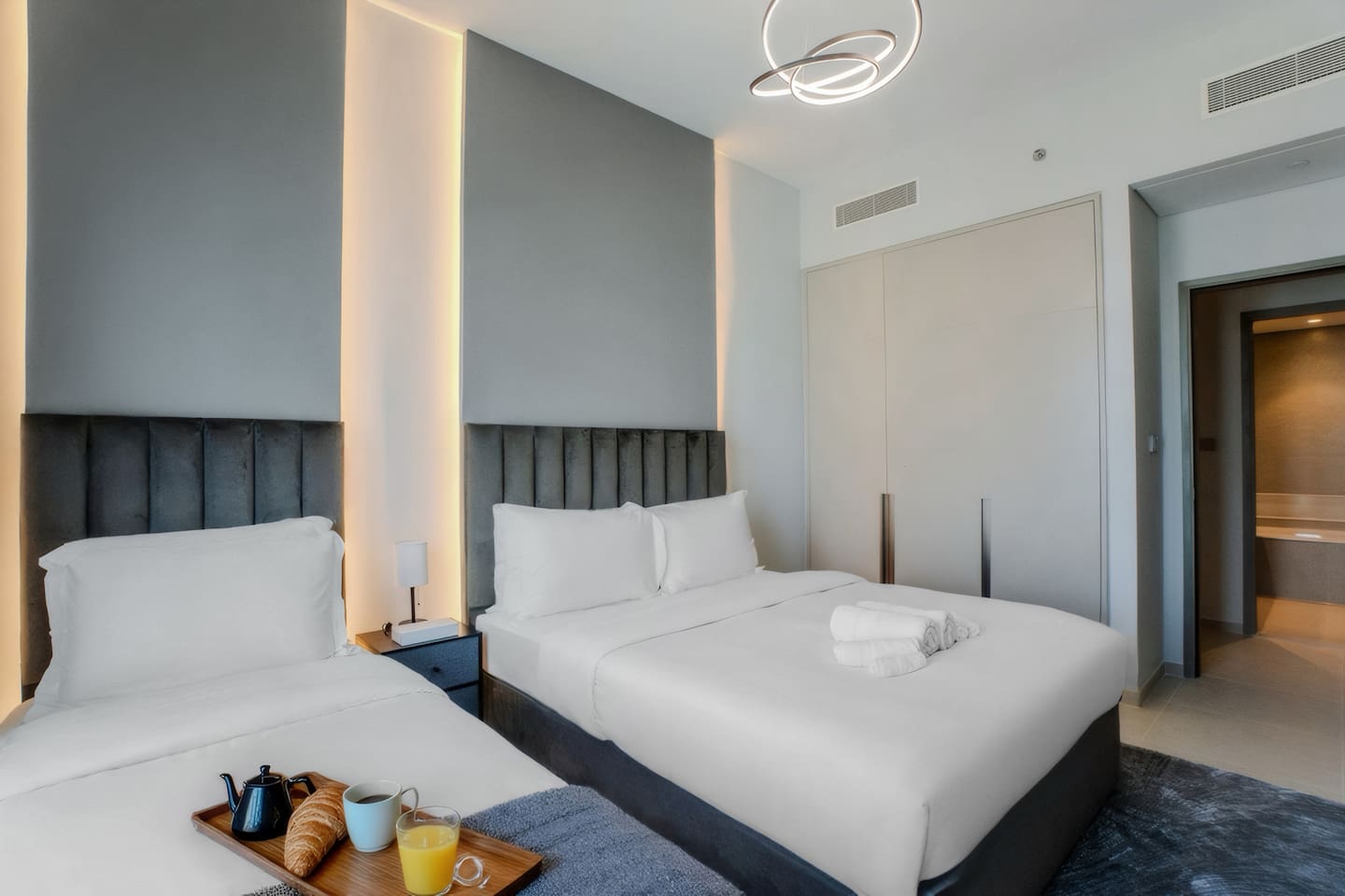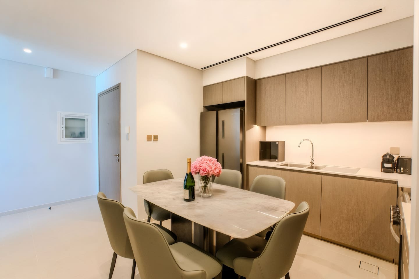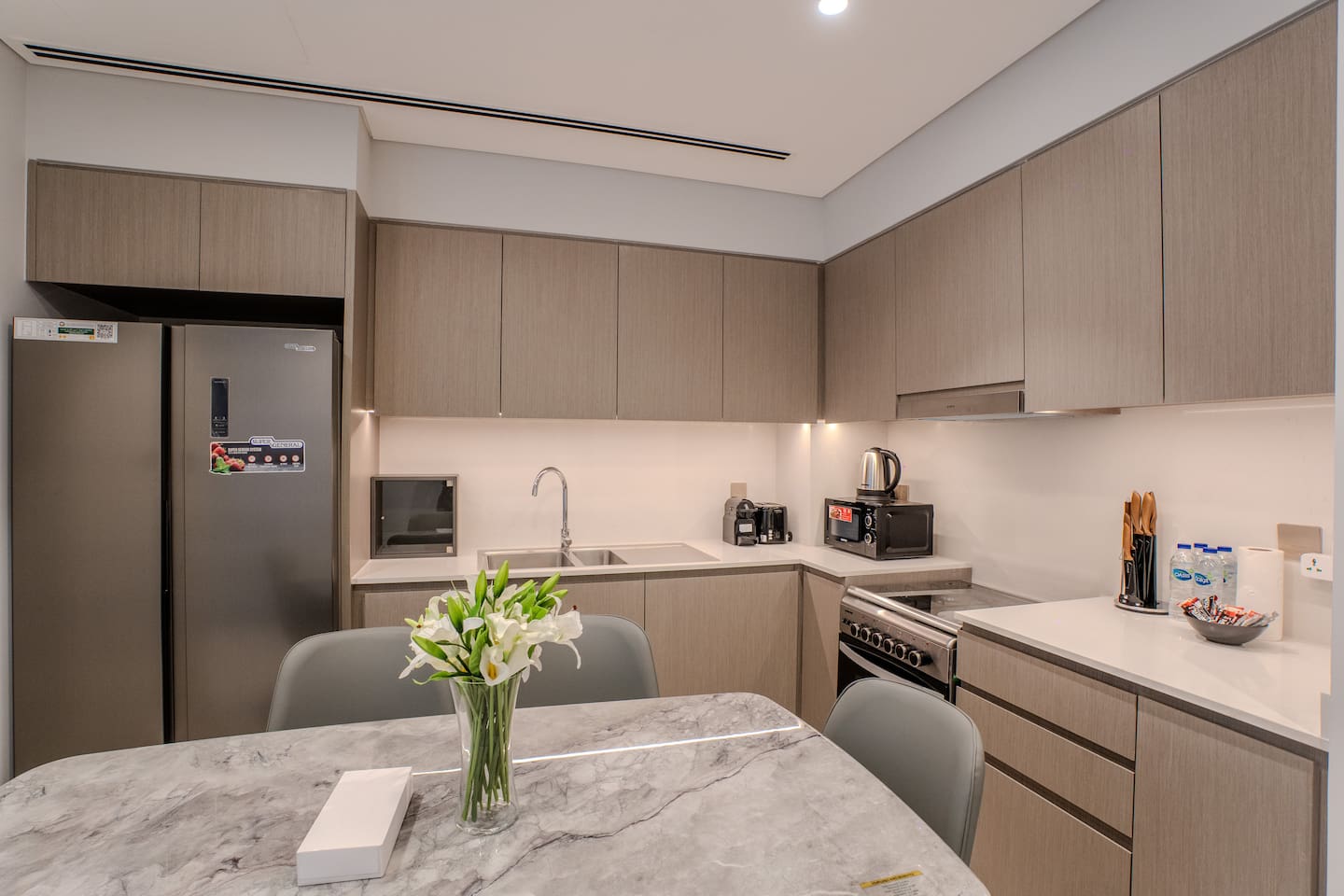 🌃 A unique view in Dubai, inside one of the city’s most exclusive buildings inaugurated in 2025 – offering true 5-star hotel amenities! The infinity pool provides one of the most spectacular views directly over the Burj Khalifa and the Dubai Fountain. 🌅 Step out of the stunning lobby and you’ll find yourself right in the heart of Dubai! Walk past the Burj Khalifa to reach the Dubai Mall and the metro, which connects you easily to every part of the city. There’s truly no more central accommodation — you’ll be staying exactly in the heart of Dubai! The apartment is fully equipped for your comfort: high-end finishes, a large balcony perfect for outdoor dining with breathtaking views, a fully equipped kitchen, and all the necessary appliances. For entertainment, enjoy three 65’’ smart TVs with international channels and Netflix for relaxing moments at home. --- 🛋 **MAIN FEATURES** ☑ Address: Grande Signature Residence ☑ 3 bedrooms (one can be set up as a living room) – Sleeps up to 9 ☑ 50th floor ☑ Infinity pool with Burj Khalifa view ☑ Dubai Mall, restaurants, cafés, and nightlife just steps away ☑ Metro station accessible via Dubai Mall ☑ Private parking space ☑ Free high-speed Wi-Fi ☑ Baby crib available on request --- ⚠️ **LAYOUT OPTIONS AVAILABLE UPON REQUEST** **Option 1** 🍽️ Separate dining area 🛏 Bedroom 1: one king bed + one single bed 🛏 Bedroom 2: one king bed + one single bed 🛋️ Separate living room **Option 2** 🍽️ Separate dining area 🛏 Bedroom 1: one king bed + one single bed 🛏 Bedroom 2: one king bed + one single bed 🛏 Bedroom 3: two double sofa beds *Option 2 does not include a separate living room. The dining area (kitchen and table) is always separate.* --- 🍳 **KITCHEN & DINING AREA** A modern kitchen equipped with everything you need to prepare anything from a quick snack to a gourmet dinner. Spacious and functional countertops are paired with a tall table for six. ✔ Stove ✔ Oven ✔ Toaster ✔ Refrigerator & freezer ✔ Coffee machine with capsules ✔ Electric kettle ✔ Sink – hot & cold water ✔ Serving trays ✔ Glassware ✔ Cutlery ✔ Pots & pans ✔ Dining table for 4 Enjoy a full home-style cooking experience! 🍽️✨ --- 🛏 **BEDROOM 1** 1 King-size bed 1 Single bed Large wardrobe 65’’ TV En-suite bathroom 🛏 **BEDROOM 2** 1 King-size bed 1 Single bed Large wardrobe 65’’ TV 🛏 **BEDROOM 3 / LIVING ROOM** 2 Double sofa beds 70’’ TV ⚠️ Alternatively, it can be arranged with two sofas to create a spectacular living room with a Burj Khalifa view. A mixed setup (1 bed + 1 sofa) is also available. --- 🛁 **2 BATHROOMS** Elegant bathrooms equipped with every comfort: ✔ Spacious shower (Bathroom 1) and bathtub (Bathroom 2) ✔ Mirror ✔ WC ✔ Bath & face towels ✔ Hairdryer ✔ Shampoo, conditioner, shower gel, soap & body lotion --- 👶 **CHILDREN’S AMENITIES AVAILABLE ON REQUEST** **Baby crib** – ensures a safe and comfortable sleep for the little ones (*please request at least 3 days before arrival*). **High chair** – makes mealtimes easier and more practical (*please request at least 3 days before arrival*).